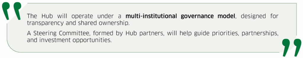 Governance is structured so that no single institution controls the Hub, but all benefit from it.